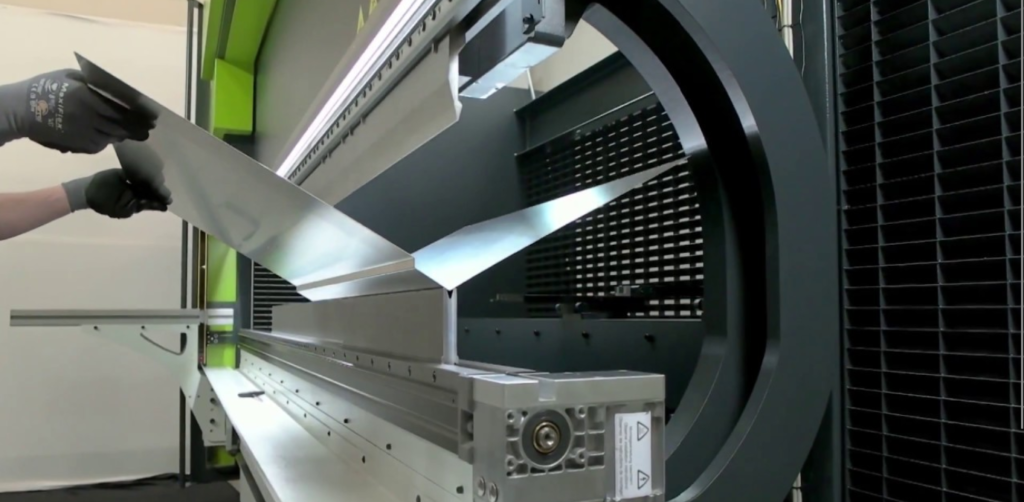 Technológia ohýbania plechu pomocou ohraňovacieho lisu SAFAN CNCL-K 120-3100, ktorý je vhodný na spracovanie širokej škály plechov s rôznou hrúbkou a dĺžkou. Vďaka CNC riadeniu a presnej hydraulike dosahujeme vysokú kvalitu výsledného tvaru a konzistentné rozmery pri sériovej aj kusovej výrobe.